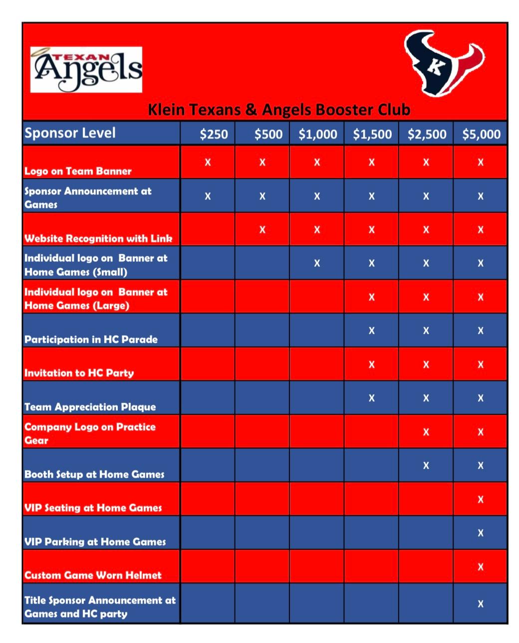 The Klein Texans & Angels 2025 - 2026 Sponsors: